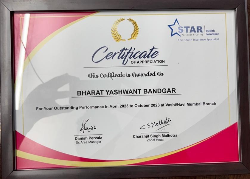 Star Health Best Performance Certificate